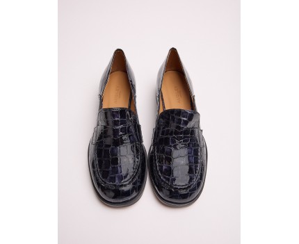 22454 - Low heeled shoe in black leather. Renewed moccasin style design in smooth leather with rounded neckline and rounded toe. Perfect fit at the heel and maximum support at the ankle. Wide base heel with absolute comfort. Natural leather lining. Soft cushioned insole.