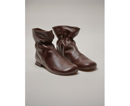 Low heeled ankle boots in caoba nappa caoba brown leather with elasticated rubber
