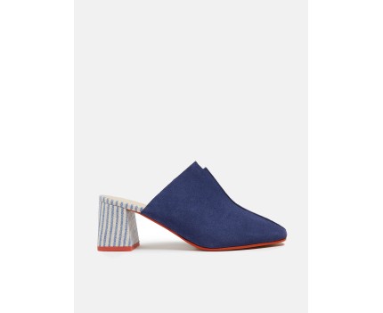 22981 - Zapato zueco de tacón medio en piel azul. Diseño zueco destalonado con pieza fina en la pala y los dedos cubiertos aportando un ajuste perfecto al empeine. Puntera redondeada. Planta acolchada soft en cuero. Elegante y confortable exclusivo tacón de poca altura. Forro en piel 100%.