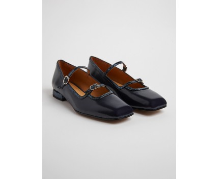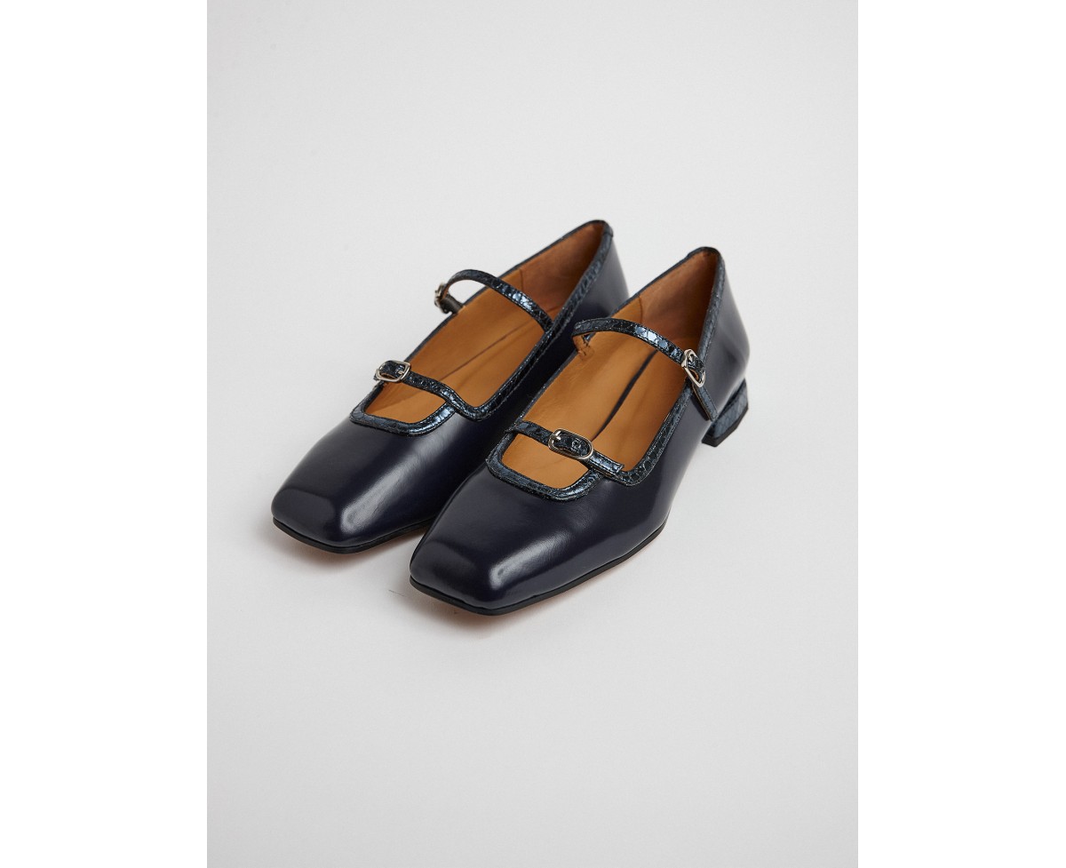 22885 - Zapato de tacón bajo en piel de ante azul marino combinando. Diseño estilo 'Merceditas' con correas y hebillas sobre el empeine en piel contraste que aportan un ajuste perfecto otorgando máxima sujeción en el tobillo. Éstas crean un estilo sofisticado y, especial sobre esta pieza. Puntera ligeramente cuadrada y tacón de base ancha con absoluto confort forrado al tono. Forro en piel natural. Planta acolchado soft.