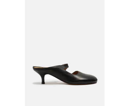 Zapato zueco de tacón medio en piel napa negro