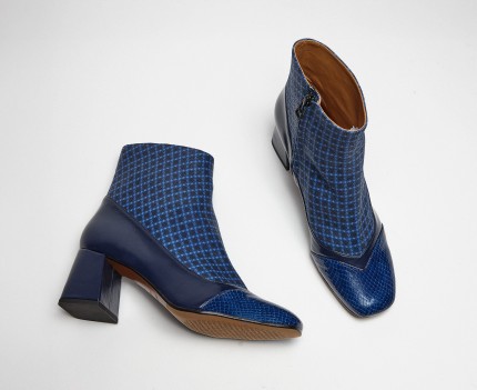 22697 - Botín de tacón medio en piel azul combinado. Diseño estiloso mezclando texturas creando un efecto sofisticado con un ajuste suave y adaptable a la caña. Su ajuste perfecto sobre el empeine brinda máxima sujeción en el tobillo y talón con cremallera interior en nylon con bonito tirador en metal. Puntera ligeramente fina en acabado cuadrado. Exclusividad en el tacón de base y perfil ancho con absoluto confort. Forro en piel natural. Planta acolchado soft.