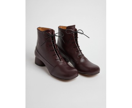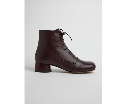 Botín de tacón bajo en piel burdeos