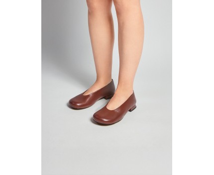 22454 - Zapato de tacón bajo en piel cherry. Diseño estilo mocasín renovado en piel lisa con escote redondeado y puntera redondeada. Ajuste perfecto al talón y máxima sujeción en el tobillo. Tacón de base ancha al tono con absoluto confort. Forro en piel natural. Planta acolchado soft.