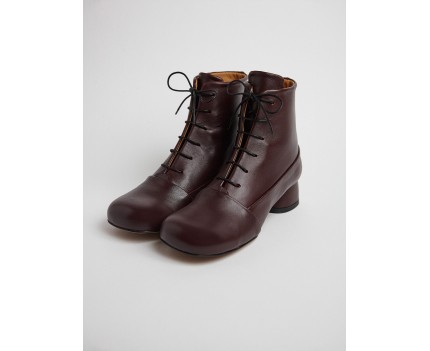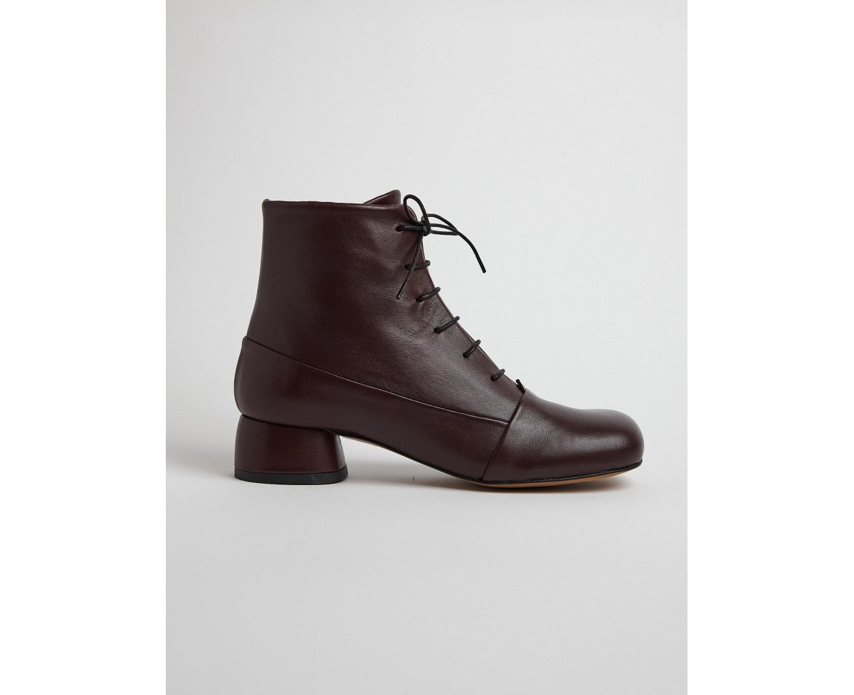 22706 - Stivaletti con tacco basso in pelle bordeaux. Design dal taglio semplice con cerniera con tiretto tono su tono come ornamento. Massima regolazione sul collo del piede, sulla caviglia e sul tallone in morbida pelle. Punta leggermente arrotondata per uno stile casual e dinamico. Tacco a base larga per un comfort assoluto. Fodera in pelle naturale. Soletta morbida e ammortizzata.