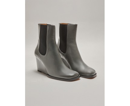 Stivaletto con tacco alto e plateau in pelle  grigio  lucida