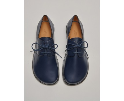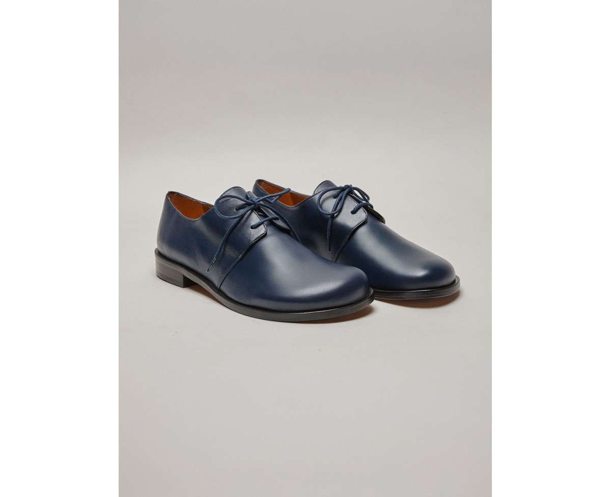 22823 - Scarpa con tacco basso in pelle nappa navy. Design esclusivo in stile blucher con lacci neri e punta arrotondata. Calzata perfetta sul tallone e massimo sostegno alla caviglia. Tacco con suola a base larga in nero per un comfort assoluto. Fodera in pelle naturale. Soletta morbida e imbottita.