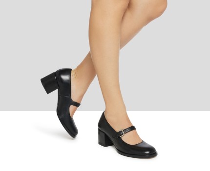 22641 - Scarpa con tacco medio in pelle nera. Design stile 'Mary Jane' con cinturino con fibbia quadrata come dettaglio e scollatura rotonda. Vestibilità perfetta con cinturino e fibbia che offrono il massimo sostegno alla caviglia. Punta leggermente arrotondata e tacco in pelle nera a base larga per un comfort assoluto. Fodera in pelle naturale. Soletta morbida e ammortizzata.