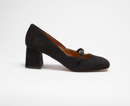 22647 - Décolleté con tacco medio in pelle scamosciata nera. Design con scollatura quadrata e punta quadrata con dettaglio di fibbia con cinturino come abbellimento, anche se può essere regolato, rendendolo molto elegante sulla punta. Uno stile assolutamente distinto con punta quadrata e con un colore speciale per dare un tocco di colore ai vostri look. Calzata perfetta sul tallone e massimo sostegno alla caviglia. Tacco a base larga con un tocco di distinzione che offre un comfort assoluto. Fodera in pelle naturale. Soletta morbida e ammortizzata.