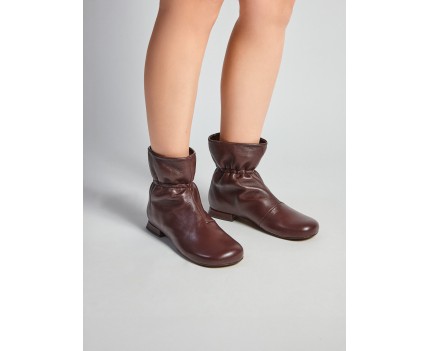 Stivaletti con tacco basso in pelle nappa caoba con gomma elastica