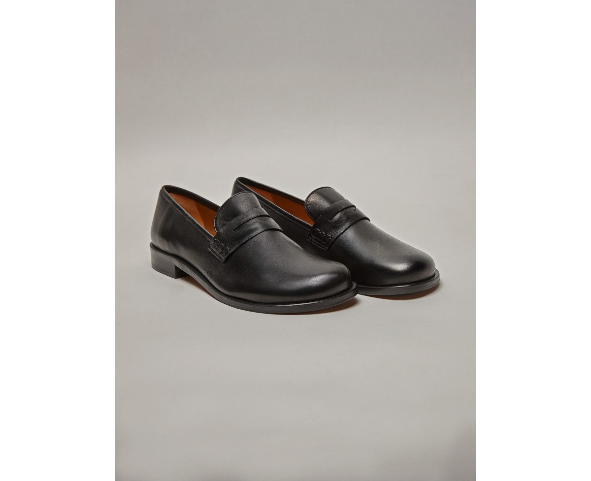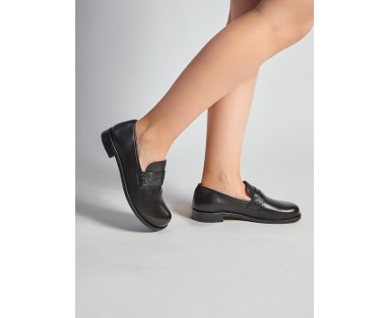 22861 - Scarpa con tacco basso in pelle nera. Modello a mocassino con nappina in pelle stampata multicolore sulla tomaia e dettaglio sul tallone foderato in pelle a contrasto. Calzata perfetta sul tallone e massimo sostegno alla caviglia. Punta leggermente arrotondata e tacco a base larga per un comfort assoluto. Fodera in pelle naturale. Soletta morbida e ammortizzata.